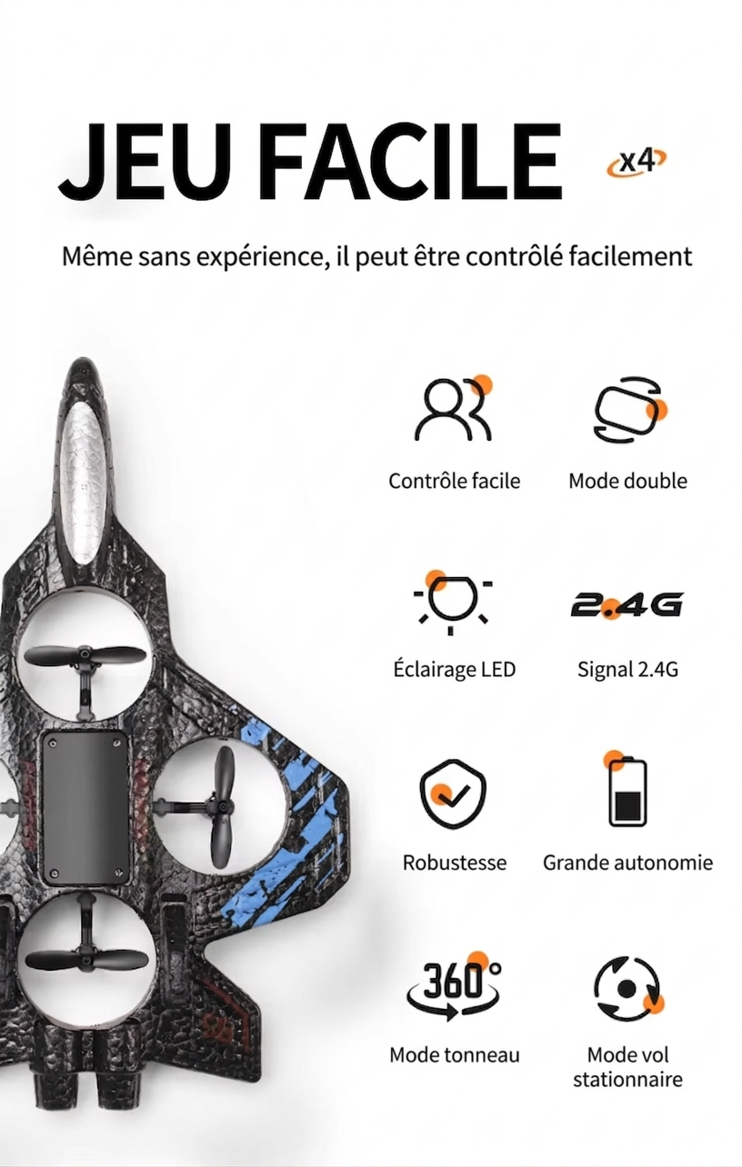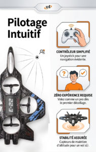 • Pilotage Intuitif : Système « Jeu Facile » pour un contrôle total, même sans aucune expérience préalable.
